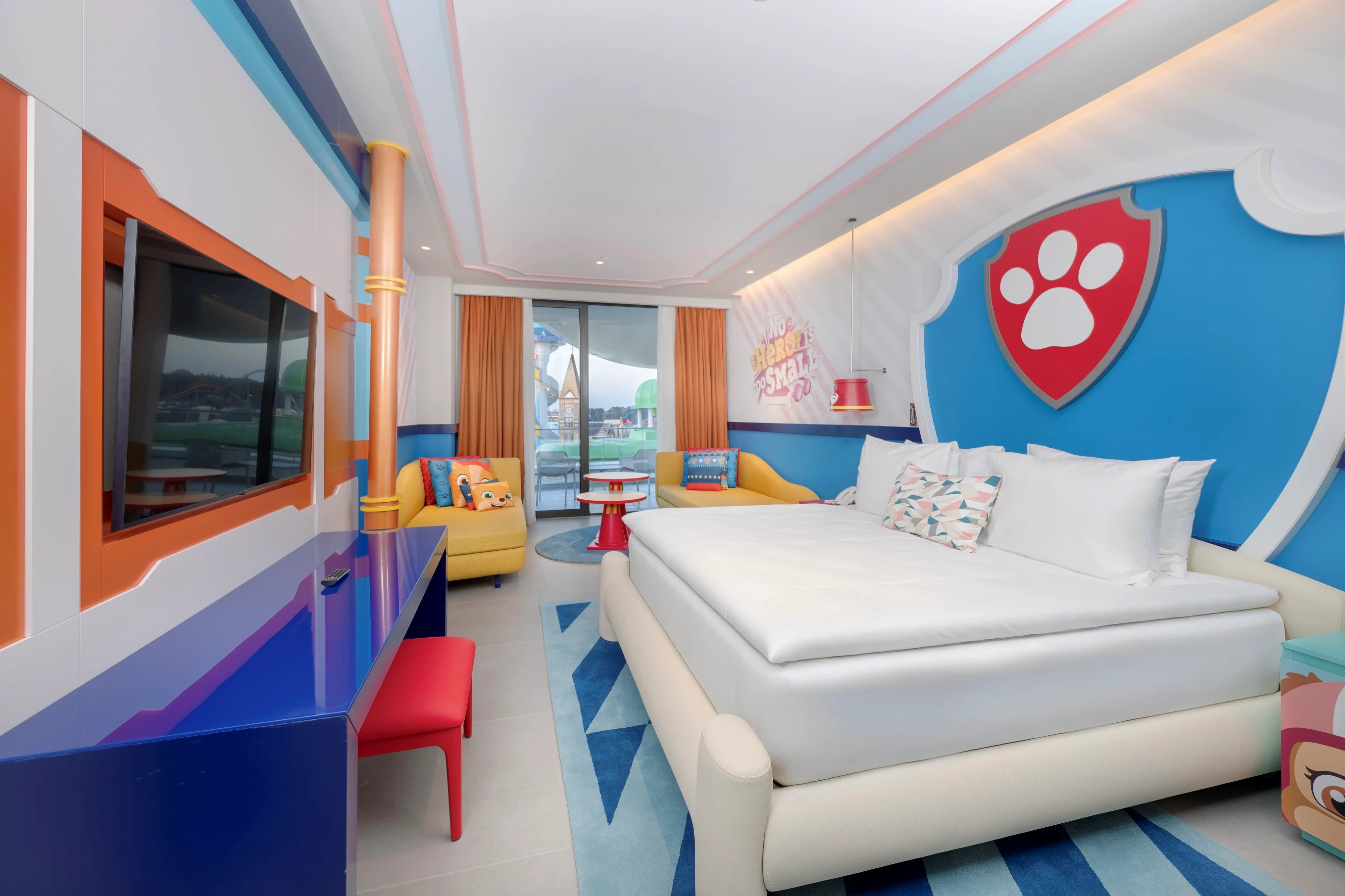 Nickelodeon-temaer. Om sommeren kan du også ta deg til stranden ved